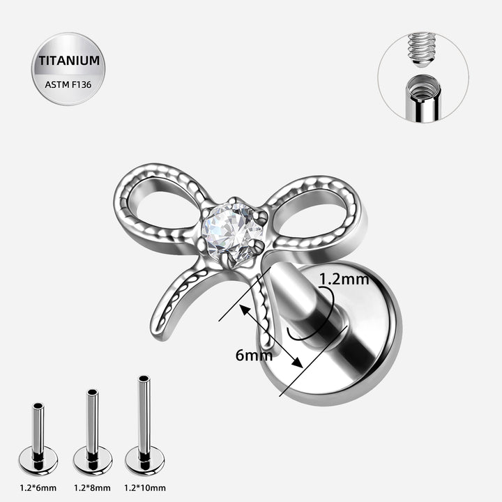 16G Titanium CZ Bow Labret — Internally Threaded Ear & Lip Jewelry