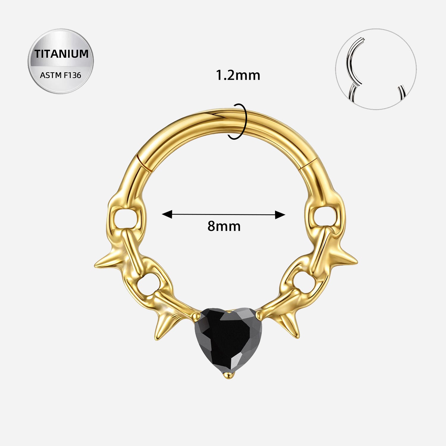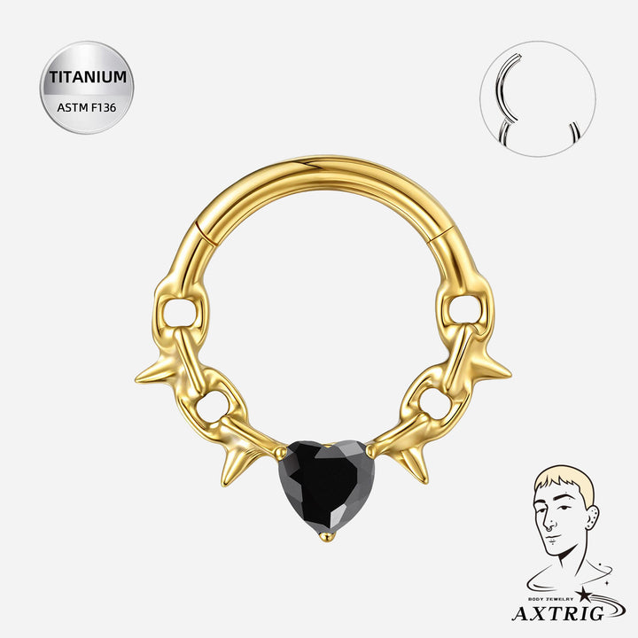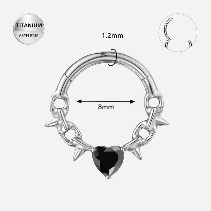 16G Titanium Segment Ring W/ Black CZ Heart – ASTM F136 Septum Piercing Jewelry (8mm)