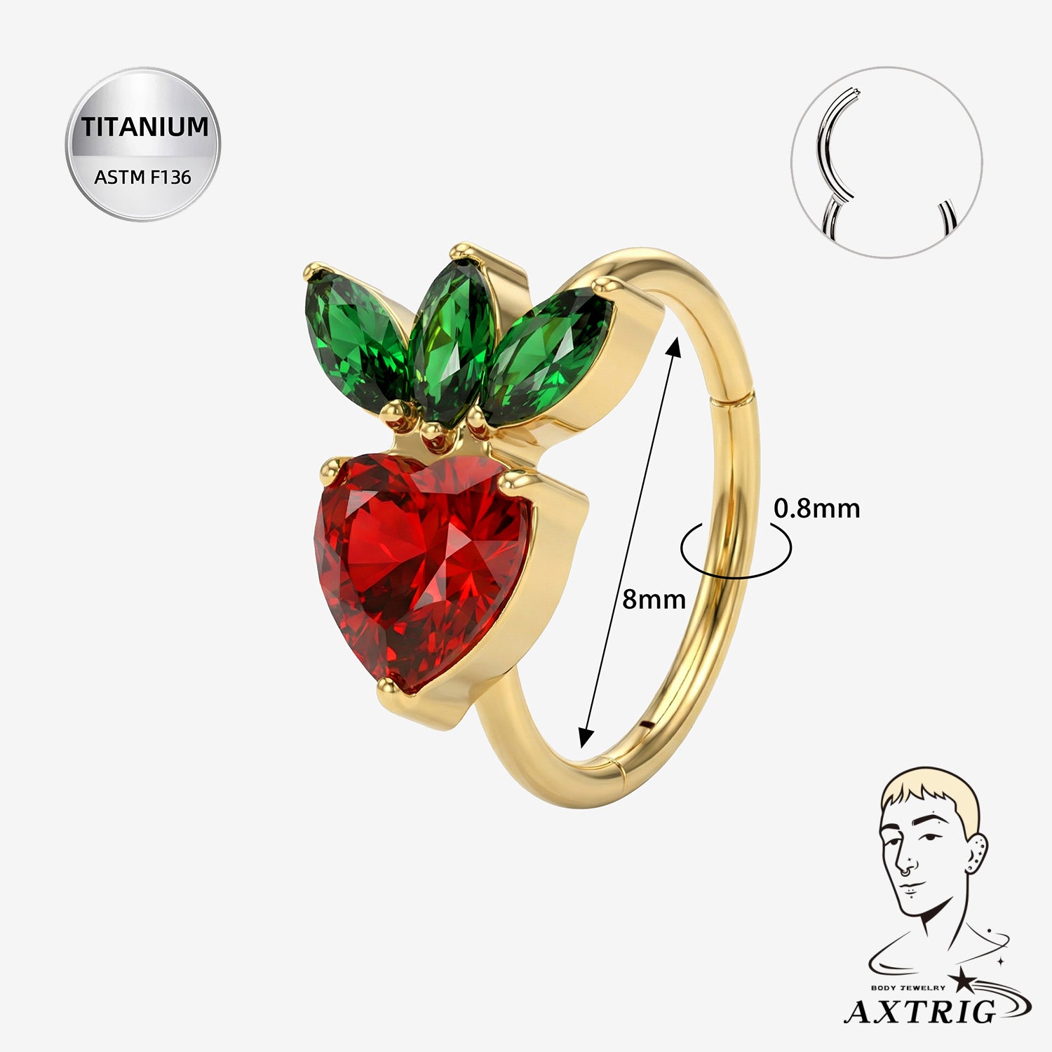 20G ASTM F136 Titanium Strawberry Nose Hoop (8mm)
